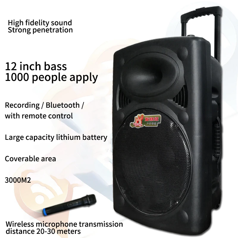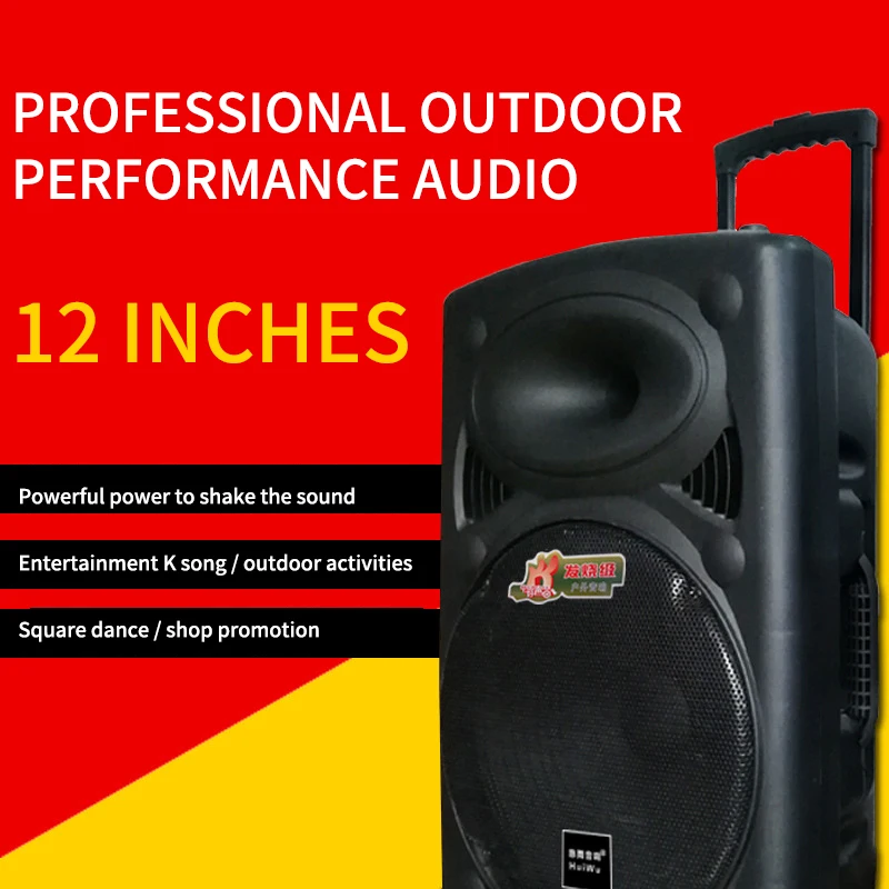 Best Quality FELYBY W-12 12" Wireless Bluetooth Trolley Speaker Outdoor Pool Party Beach Camping Karaoke Speaker