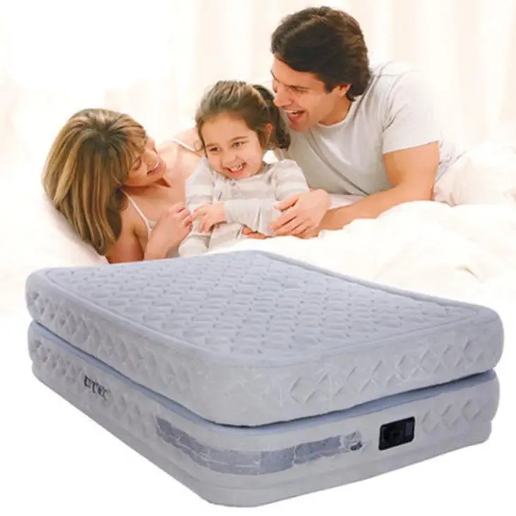 Best INTEX Inflatable Bed New Double Layer Pull Air Mattress Built-in Electric Pump Double Plus Air Cush