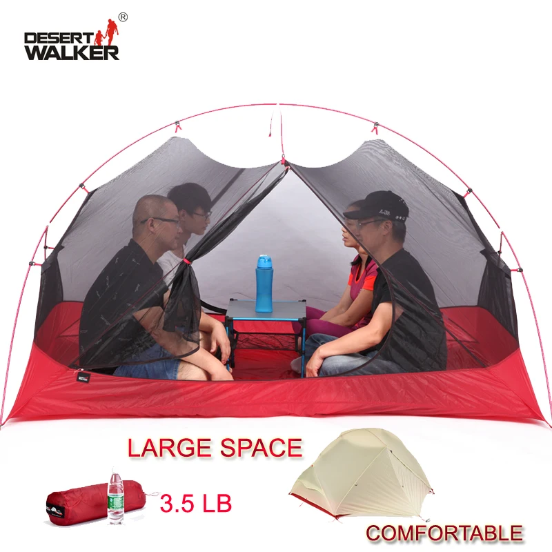 HOT SALE 3.5LB 4 Person Ultralight 15D Nylon Beach Tent 213*134*120CM Large Space Family Camping Tent Comfor